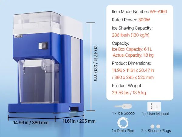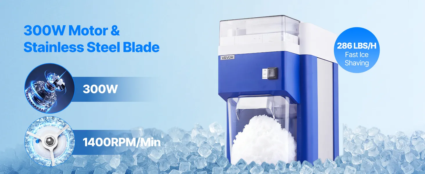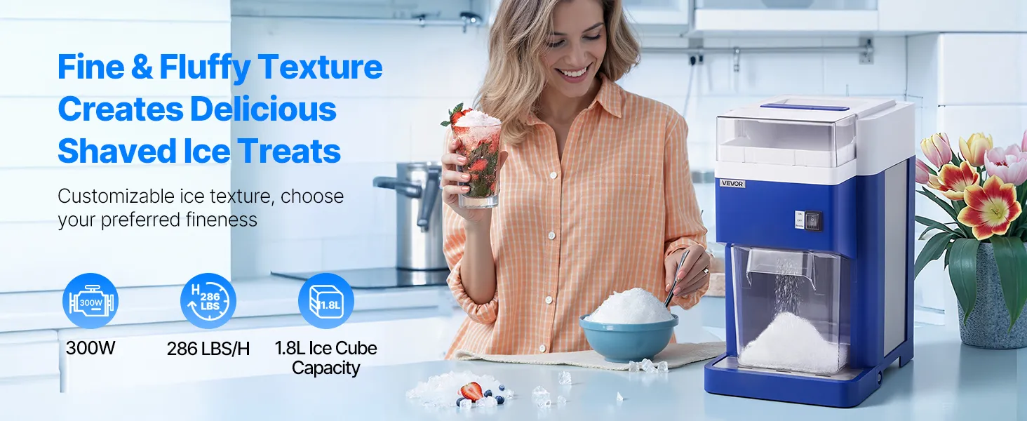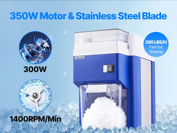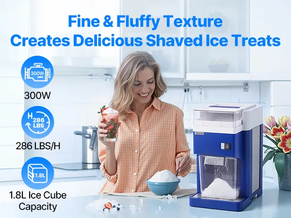 VEVOR Komercyjna kruszarka do lodu, pojemność 1,8 l, drobna i puszysta, z silnikiem 300 W i ostrzami ze stali nierdzewnej, komercyjna kruszarka do lodu do cukierni, spotkań rodzinnych, restauracji, niebieska