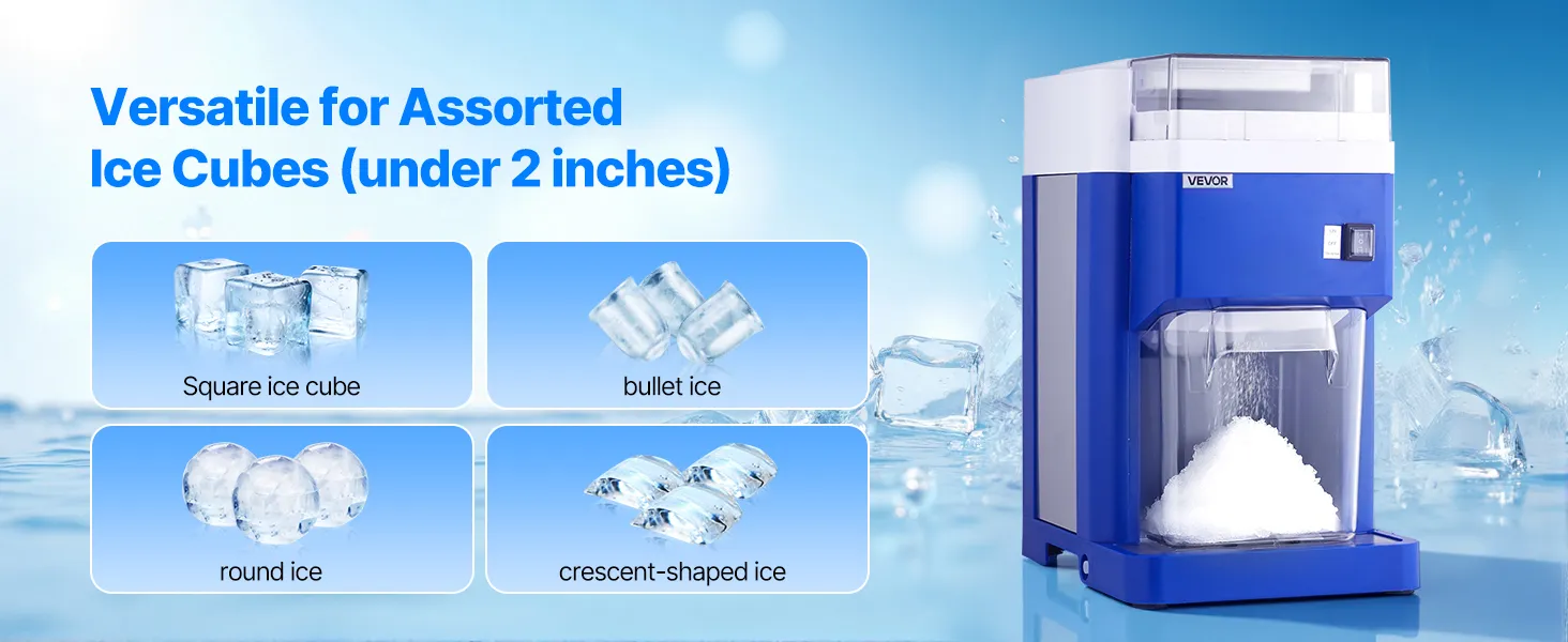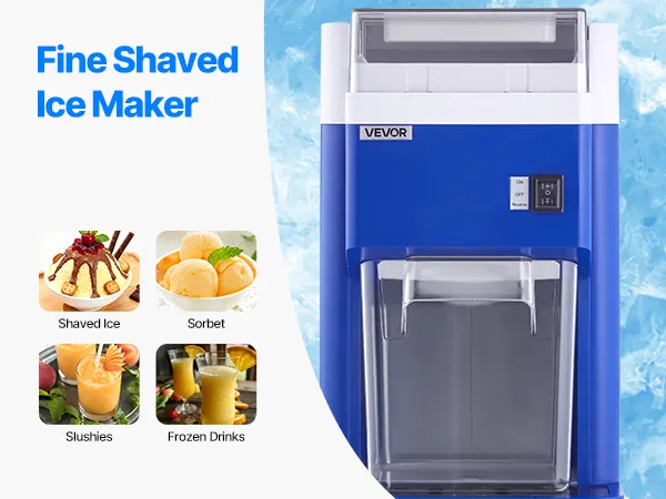 Wysokowydajna maszyna do lodów: Wyposażona w mocny silnik i ostrza ze stali nierdzewnej, ta maszyna do lodów obraca się z prędkością 1400 obr./min i produkuje do 130 kg drobno kruszonego lodu na godzinę. Cienkie, delikatne lody o konsystencji śniegu i miękkiej konsystencji.