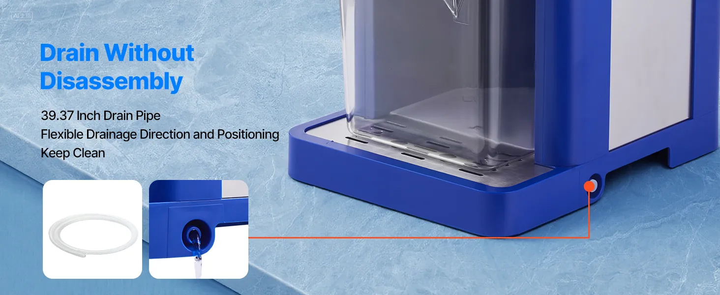 Wyjmowana tacka na wodę zatrzymuje roztopiony lód, utrzymuje blat roboczy w czystości i umożliwia łatwe czyszczenie.