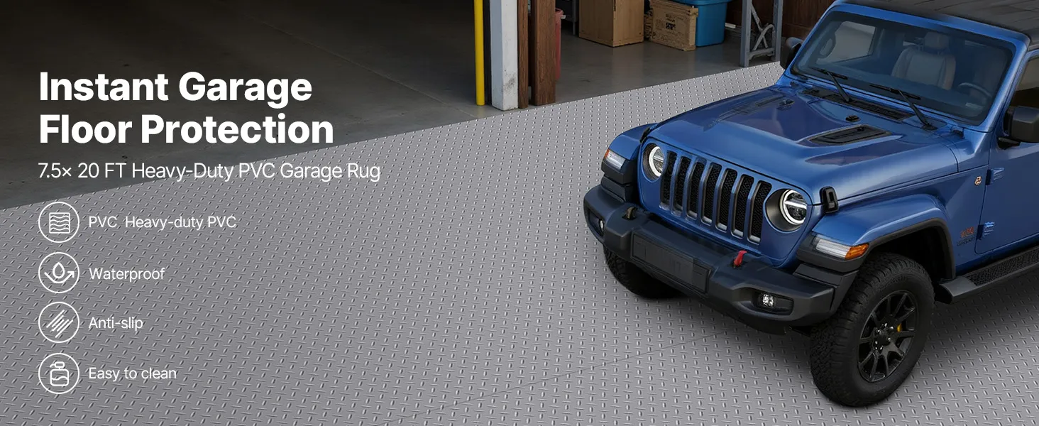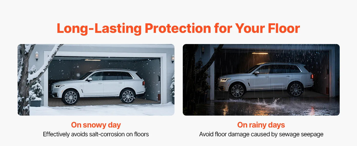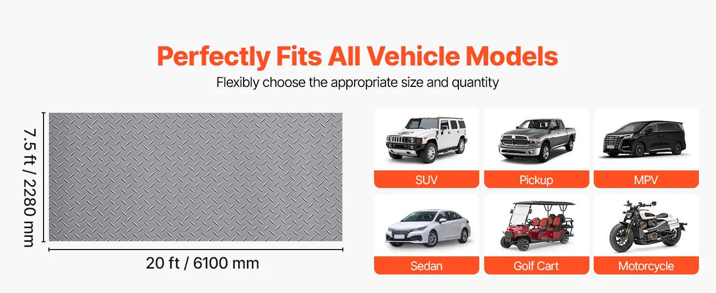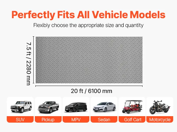 Większy zasięg: Ta mata garażowa ma wymiary 2280 x 6100 mm (7,5 x 20 stóp) i zapewnia powierzchnię 13,9 m² (150 stóp kwadratowych). Nadaje się do średniej wielkości SUV-ów, kompaktowych SUV-ów, samochodów sportowych, motocykli i wózków golfowych, a także idealnie nadaje się do magazynów, bagażników samochodowych lub przejść. Przed zakupem należy zmierzyć zajmowaną przestrzeń.