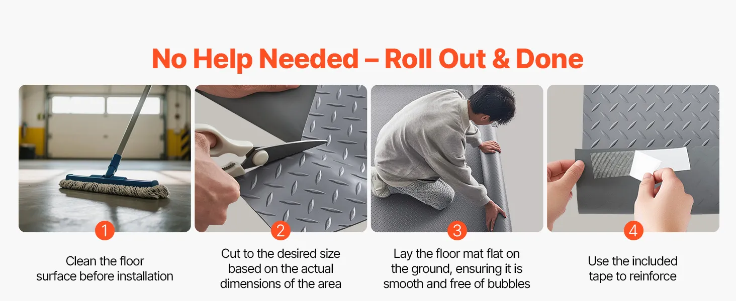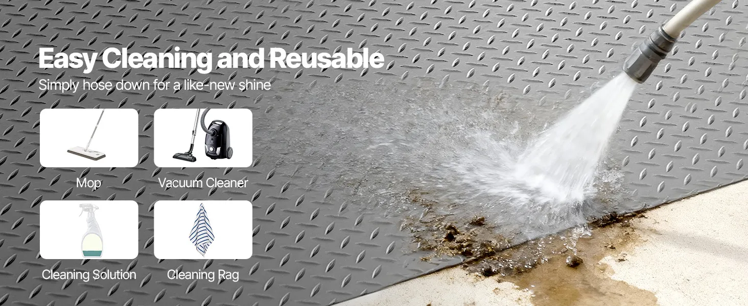 Łatwe czyszczenie: Ta rolka do podłóg w garażu, wykonana z wodoodpornego PVC, jest odporna na brud, błoto, płyny i chemikalia oraz nie plami się. Wystarczy wyczyścić ją odkurzaczem, mopem lub wilgotną ściereczką, a powierzchnia pozostanie świeża nawet przy intensywnym użytkowaniu.