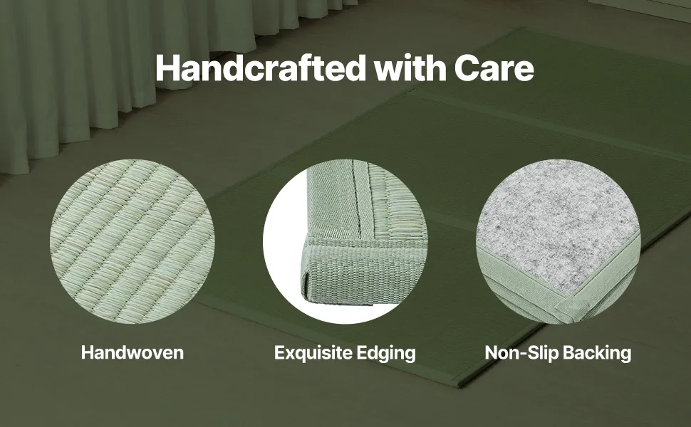 Ta mata tatami zapewnia chłód latem i ciepło zimą. Japoński materac tatami reguluje temperaturę i oczyszcza powietrze. Antypoślizgowy tył gwarantuje stabilność, a składana konstrukcja pozwala na łatwe przechowywanie, przez co mebel idealnie nadaje się do jogi i medytacji.