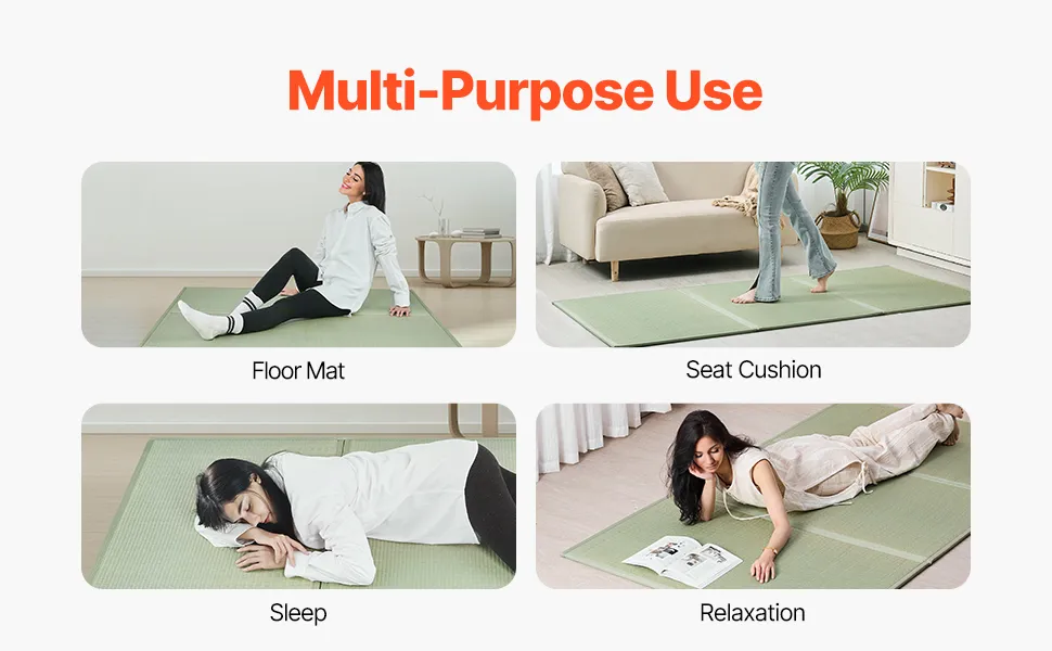 Uniwersalność: Ta mata tatami wykonana z trawy sitowej może być używana jako japoński materac, a także idealnie nadaje się do medytacji, jogi i relaksu. Jest lekki i przenośny, można go złożyć i zabrać w dowolne miejsce, a także przechowywać, aby zaoszczędzić miejsce, gdy nie jest używany.