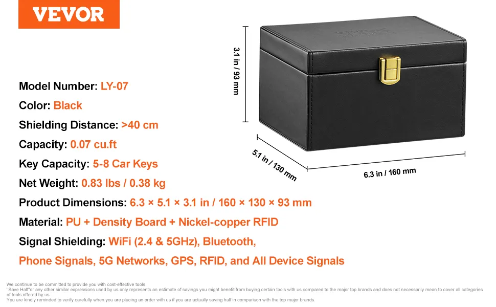 VEVOR Faradaya Box blokujący sygnał wykonany ze skóry PU, osłona na kluczyk do otwierania bezkluczykowego WiFi RFID GPS Bluetooth 5G, obudowa antykradzieżowa 160 x 130 x 93 mm, czarna