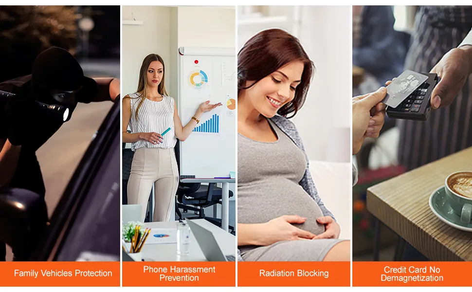 Nasze etui ekranujące może być stosowane do ochrony pojazdów, ochrony danych osobowych, ochrony przed EMP/CME itp. Może również redukować promieniowanie elektromagnetyczne i jest odpowiednie dla kobiet w ciąży.