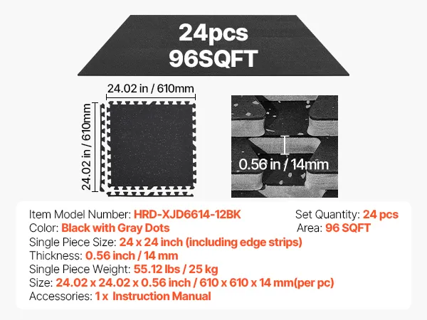 VEVOR 24 x Puzzle Mat Mat ochronna na podłogę 610 x 610 x 14 mm, mata z pianki EVA o wysokiej gęstości, mata fitness z możliwością łączenia, mata gimnastyczna, mata sportowa, mata treningowa (czarna) z szarymi kropkami