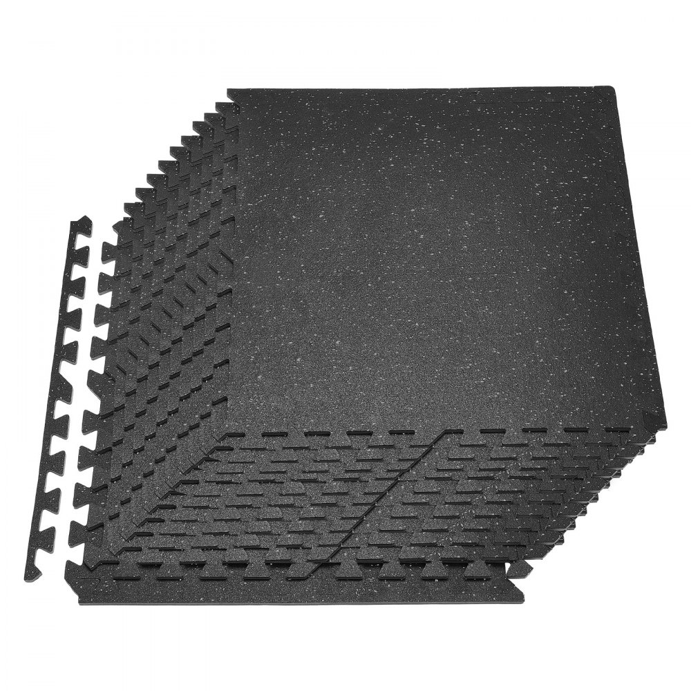 VEVOR Puzzle Exercise Mat, 24 PCS Fitness Equipment Mats, 610 x 610 x 10 mm, High-Density EVA Foam Mat Set, Interlocking Rubber Soft Tiles, Protective Floor Padding with Gray Dots for Home Gym Office