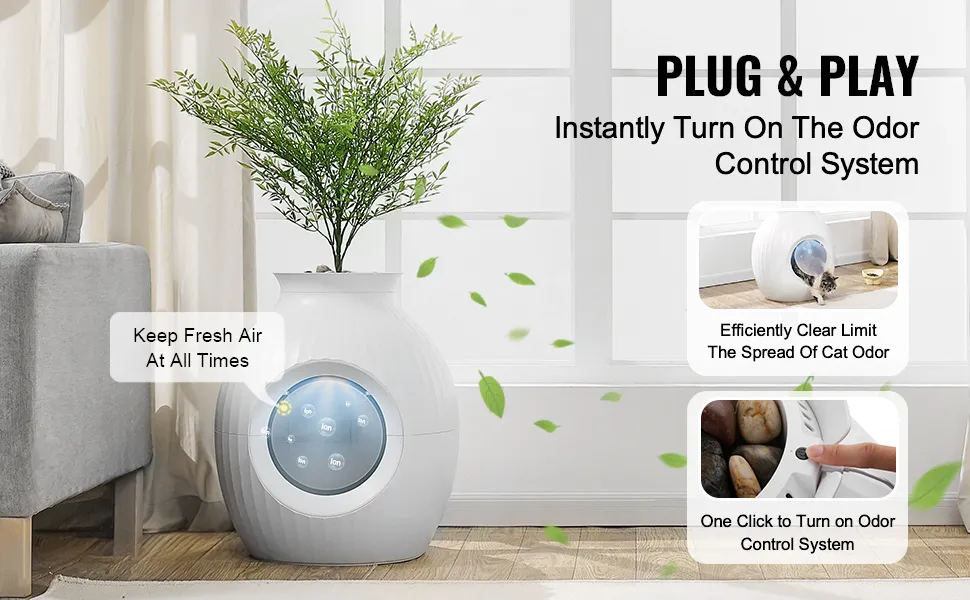 Ta roślinna kuweta może aktywować system kontroli zapachów jednym kliknięciem, aby ograniczyć rozprzestrzenianie się zapachu kociego moczu i odchodów i zapewnić stałą świeżość w pomieszczeniu. Nie musisz się martwić o zapach w domu!