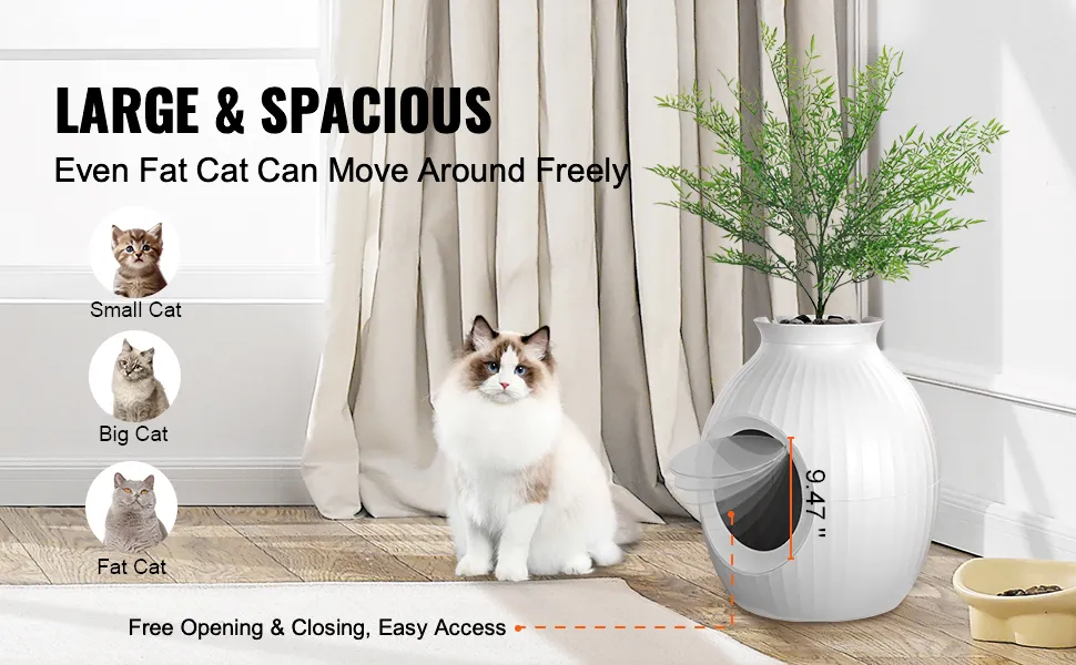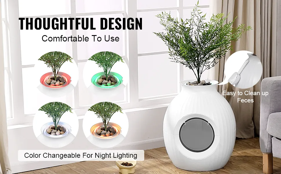 Ukryta kuweta: Ta roślinna kuweta ma kształt wazonu i zasłonkę na drzwi, dzięki czemu możesz ukryć kuwetę w dowolnym zakątku domu. Może również służyć jako dekoracja wazonu ze sztucznymi roślinami, kamykami i oświetleniem nastrojowym, aby Twój dom był bardziej przytulny i piękny.