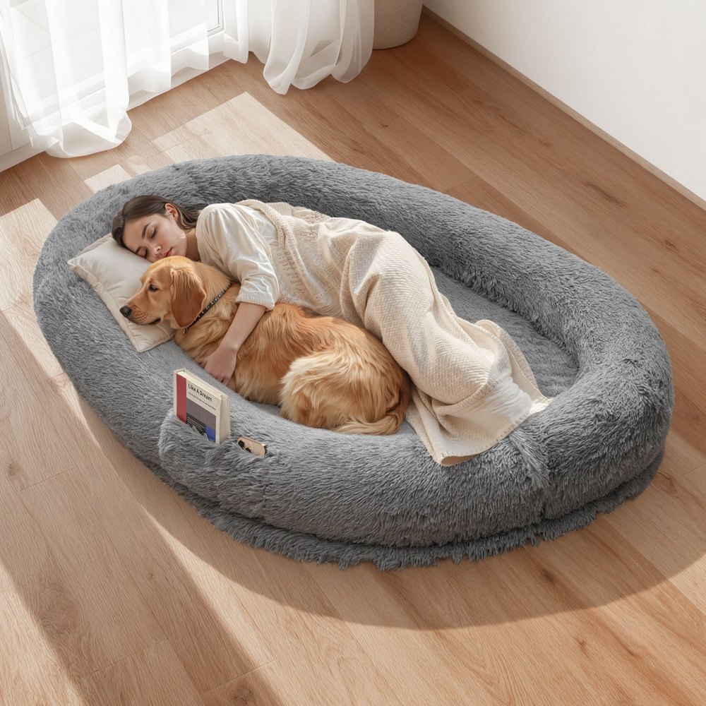 Przytulna wspólna przestrzeń: Nasze legowisko dla dorosłych zwierząt (1740 x 1180 x 240 mm/68,50 x 46,46 x 9,45 cala) oferuje bezpieczne i wygodne miejsce dla Ciebie i Twojego czworonożnego przyjaciela dzięki owalnym, zamkniętym wymiarom. Niezależnie od tego, czy chodzi o drzemkę, czy o wspólny wieczór filmowy, oboje będziecie cieszyć się dużą ilością miejsca i komfortu w spokojnej oazie, która sprawi, że wspólne chwile będą relaksujące i intymne.