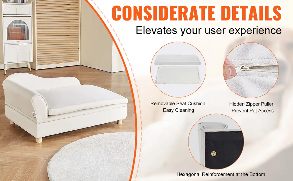 To nie tylko luksus; to również praktyczność. Tkanina jest odporna na zarysowania, dzięki czemu idealnie nadaje się dla zwierząt, które lubią się wyciągać. Czyszczenie jest łatwe, a prosta konserwacja sprawia, że sofa wygląda jak nowa. Pluszowa tkanina zapewnia wygodne miejsce do odpoczynku dla Twoich zwierząt. Gąbki o dużej gęstości wewnątrz zapewniają wsparcie stawów, chroniąc zdrowie Twojego zwierzaka. Dzięki temu możesz łatwo utrzymać czystą i wygodną przestrzeń dla swoich zwierząt w tej sofie dla psów. Ale praktyczna konstrukcja zapewnia, że Twój zwierzak może spać wygodnie, nie powodując uszkodzeń kanapy.