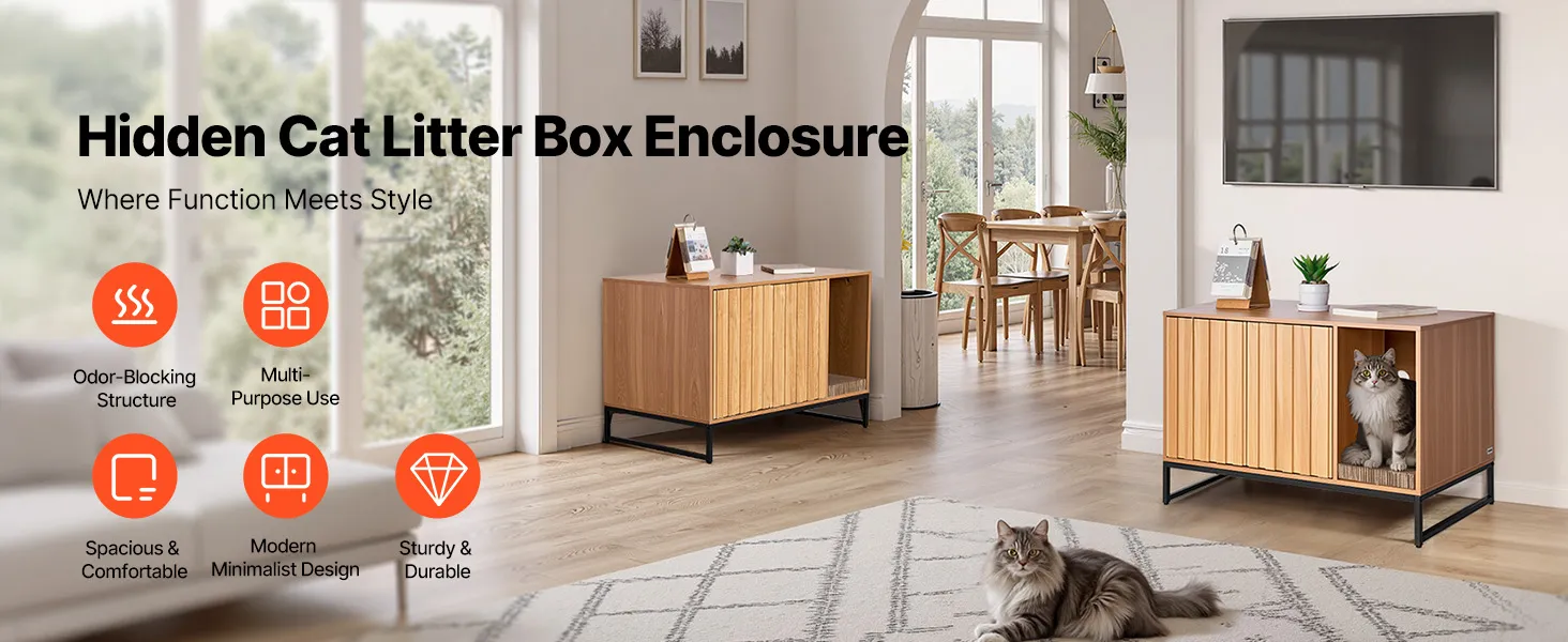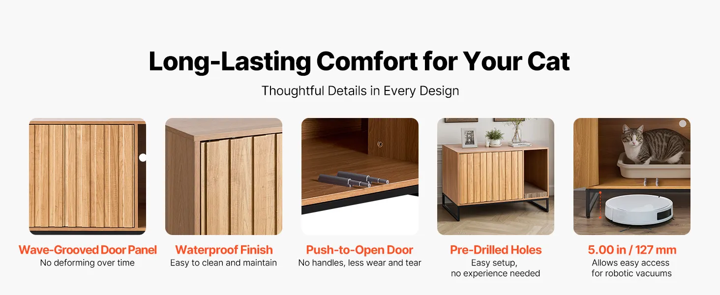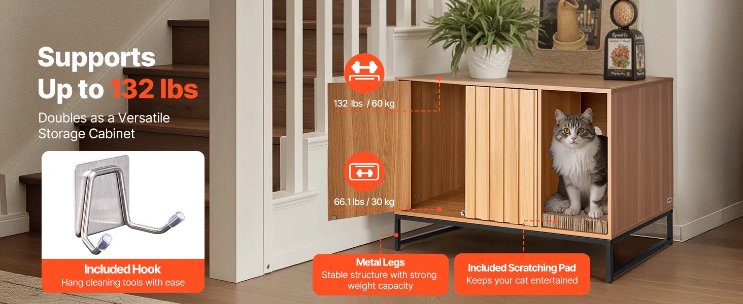 Szafka dla kota VEVOR, 800x510x568 mm, kuweta dla kota z matą do drapania i schowkiem, szafka na kuwetę dla kota, domek dla kota, pasuje do większości kuwet, do sypialni i salonu