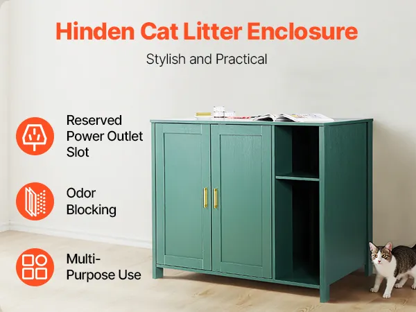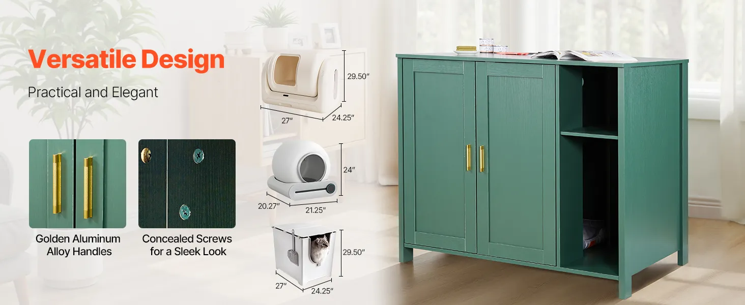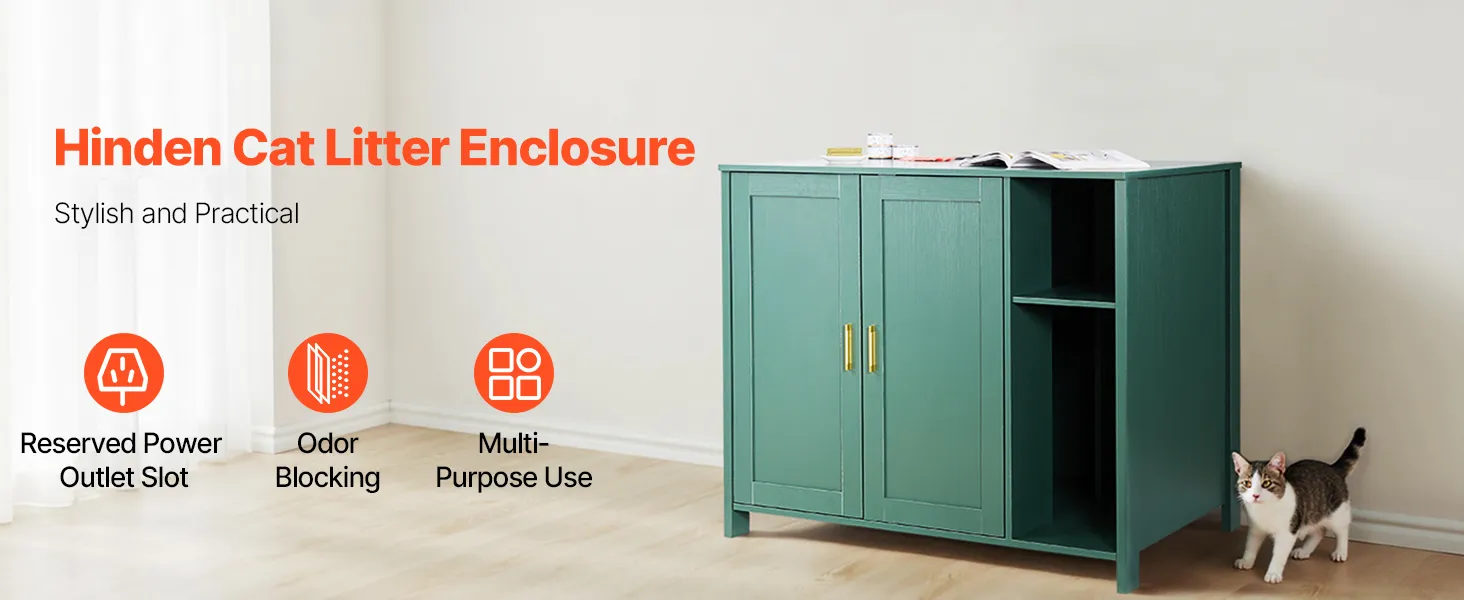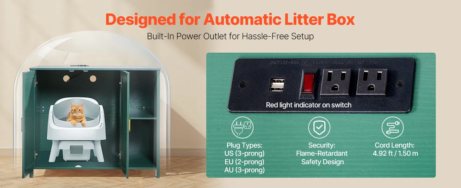 Szafka na kuwetę dla kota VEVOR, 1050x680x885 mm, szafka na kuwetę dla kota z wbudowanym gniazdkiem elektrycznym, szufladą i wyjmowaną przegrodą, pasuje do większości samoczyszczących/inteligentnych kuwet dla kotów