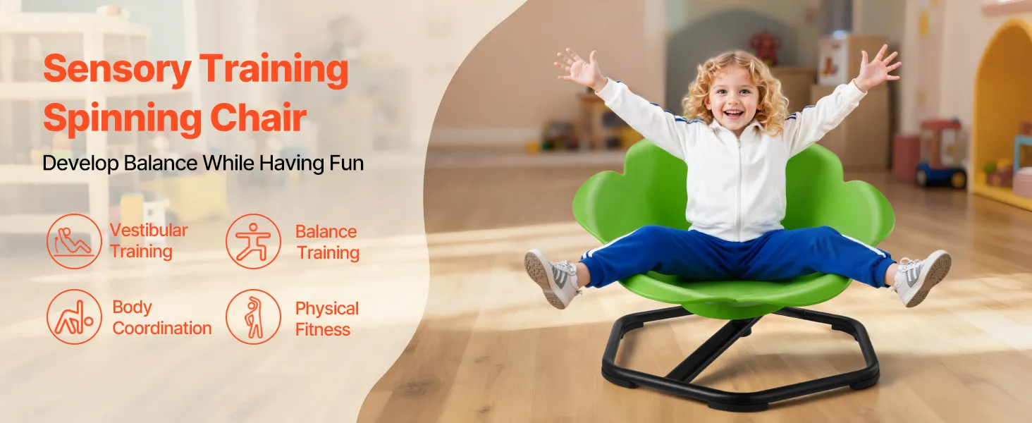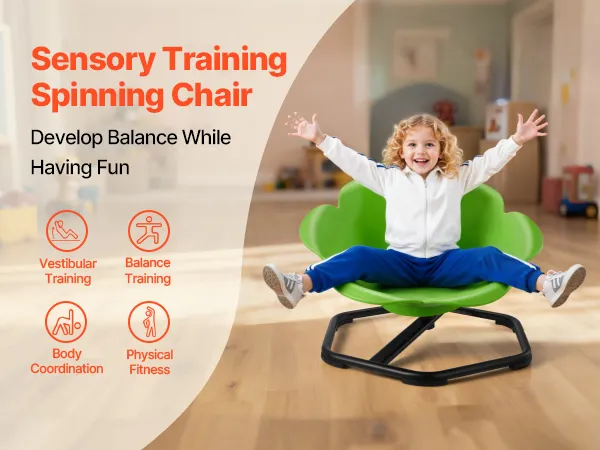 To obrotowe krzesło dla dzieci stymuluje układ równowagi poprzez ruch obrotowy, pomagając dzieciom wzmocnić mięśnie chwytu i tułowia, co przekłada się na lepszą koordynację, równowagę i rozwój mózgu.
