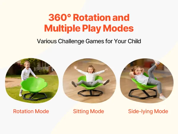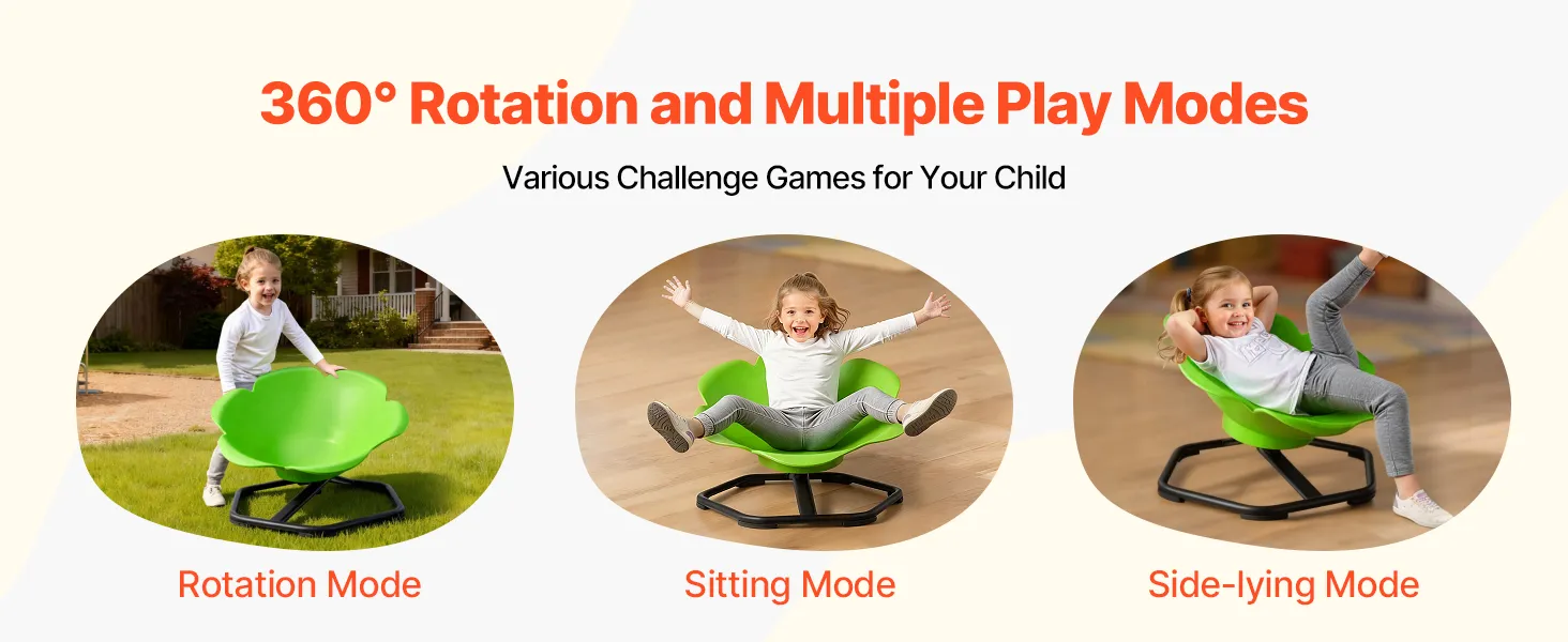 Dzięki funkcji obrotu o 360° i różnorodnym opcjom zabawy, dzieci mogą siedzieć, leżeć, obracać sensoryczny fotel obrotowy i wymyślać własne gry. Rodzice również mogą dołączyć do zabawy – to świetna zabawka dla całej rodziny!