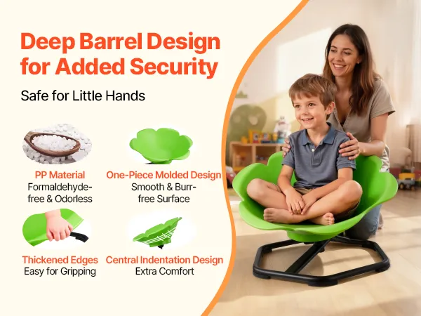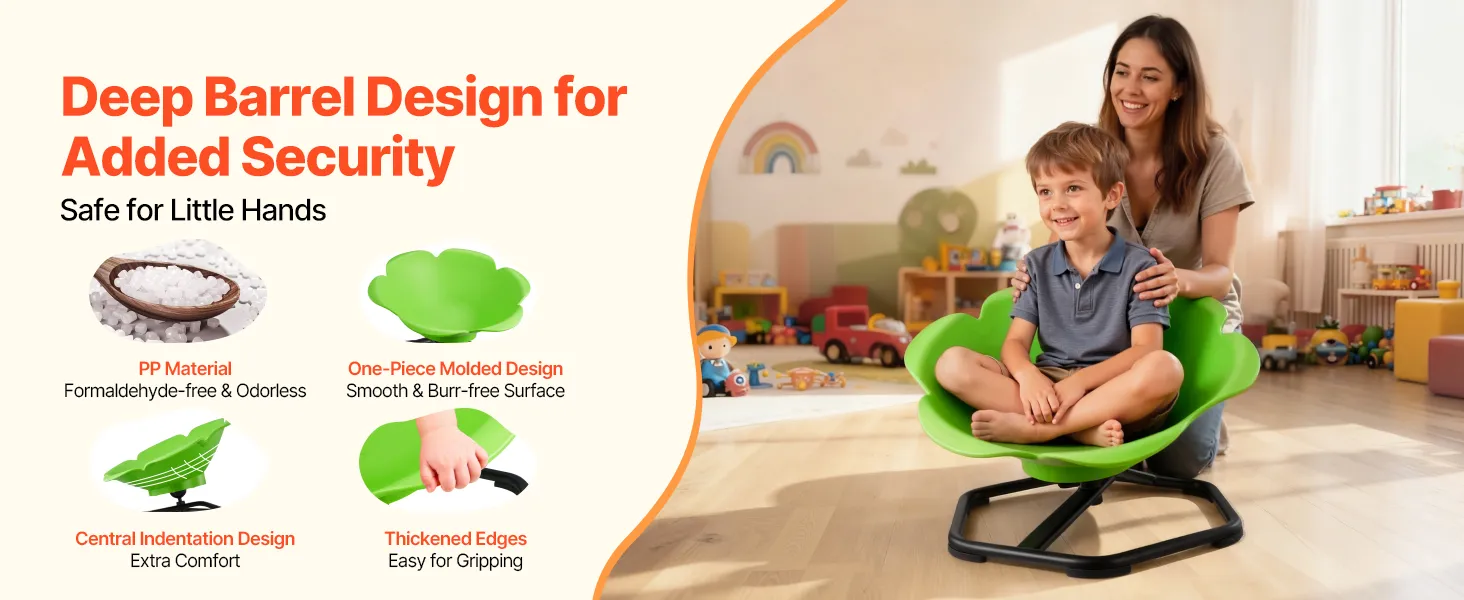 Ten obrotowy fotel dla dzieci autystycznych idealnie sprawdzi się w domu, na placach zabaw lub w żłobkach. Dzieci mogą się w nim bawić, kręcić lub odpoczywać, zapewniając im więcej radości i zabawy w dzieciństwie.