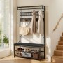 VEVOR Szafa do przedpokoju 1015 x 400 x 1830 mm, wieszak na ubrania z ławką i półką na buty (2 poziomy), wolnostojąca szafa z metalową kratką i drążkiem na ubrania, idealna do przedpokoju, sypialni
