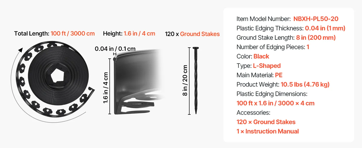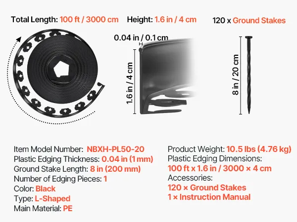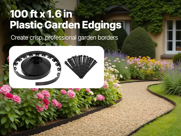 Ta elastyczna obrzeże trawnikowe idealnie nadaje się do ogrodów, rabat kwiatowych, trawników, słojów drzew i ścieżek. Tworzy wyraźne, zdefiniowane granice i schludny wygląd. Wykonane z elastycznego, przycinanego materiału, zawiera paliki do wbijania w ziemię, co ułatwia montaż. Odporne na warunki atmosferyczne, zapewnia trwałość.