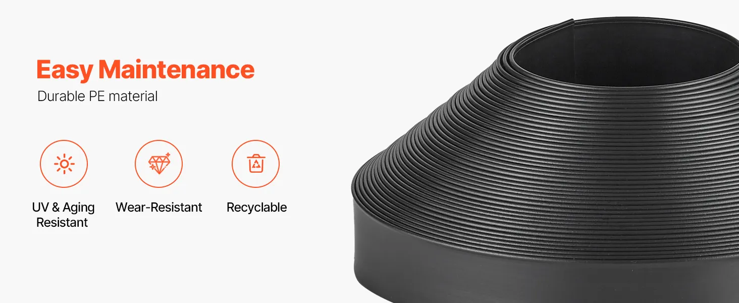 Trwały, odporny na warunki atmosferyczne materiał: Wykonana z niezwykle wytrzymałego, odpornego na promieniowanie UV i temperaturę polietylenu, plastikowa obrzeże ogrodowe zachowuje swój kształt, nie pęka ani nie blaknie z biegiem czasu.