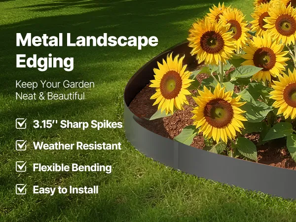 Wytrzymała ocynkowana stal: Wykonana z wysokiej jakości ocynkowanej stali z powłoką odporną na rdzę, ta metalowa obrzeże ogrodowe jest odporne na blaknięcie, pękanie i rdzewienie. Jest odporna na wszelkie warunki atmosferyczne i zapewnia długotrwałą trwałość w każdym środowisku zewnętrznym.