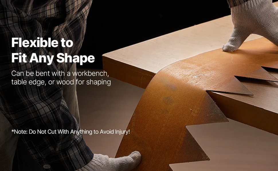 Używając narzędzi takich jak drewno lub stół warsztatowy, możesz łatwo wygiąć obrzeża ogrodowe w łuki, kwadraty lub inne niestandardowe kształty, aby dopasować je do swojego krajobrazu, bez ryzyka uszkodzenia.
