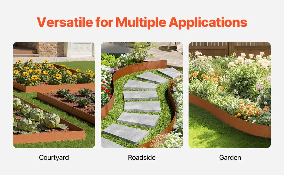 Elastyczna i wyginana: Stalowa listwa obrzeża jest niezwykle elastyczna i można ją łatwo wygiąć, dopasowując ją do indywidualnego kształtu ogrodu, niezależnie od tego, czy jest on kwadratowy, okrągły czy nieregularny. Można go łatwo wyginać, nie łamiąc go, dzięki czemu idealnie dopasowuje się do każdego projektu ogrodu.