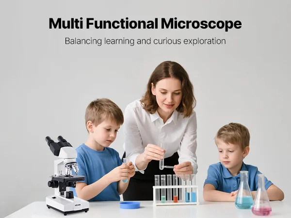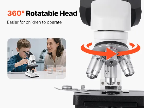 Wszechstronne zastosowanie: Dzięki obrotowej konstrukcji o 360° profesjonalny mikroskop jest łatwy w użyciu i idealnie nadaje się do nauczania w klasie, do domowych badań naukowych, do eksperymentów po szkole i do interakcji rodzic-dziecko