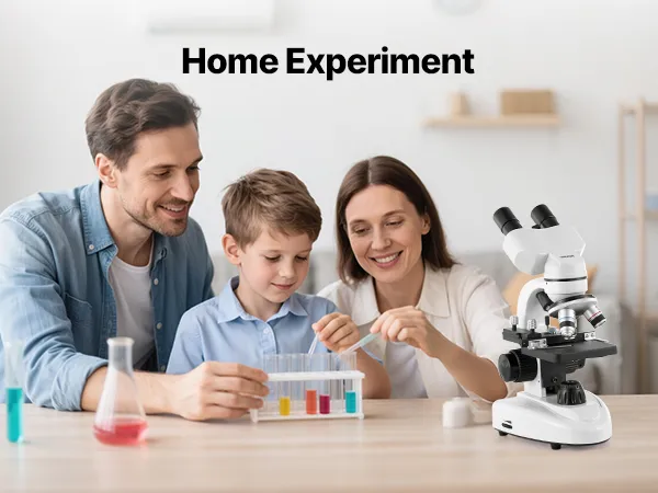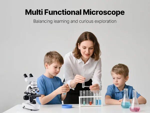 Wszechstronne zastosowanie w różnych scenariuszach: dzięki obrotowej konstrukcji o 360° profesjonalny mikroskop jest łatwy w użyciu i idealnie nadaje się do nauczania w klasie, do domowych badań naukowych, do eksperymentów po szkole i do interakcji rodzic-dziecko