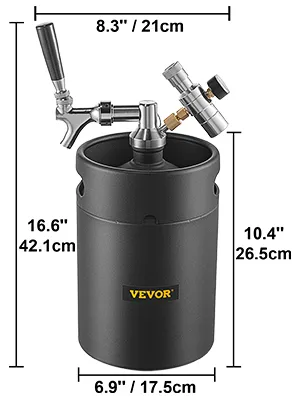 Ten mini dystrybutor piwa z beczki ma pojemność 170 uncji (5 l), co wystarcza na około 10 filiżanek świeżego piwa. Dzięki kompaktowym wymiarom Φ 7,3 x 12,6 cala (Φ 185 x 320 mm) z łatwością mieści się w lodówce lub minimeloniku.
