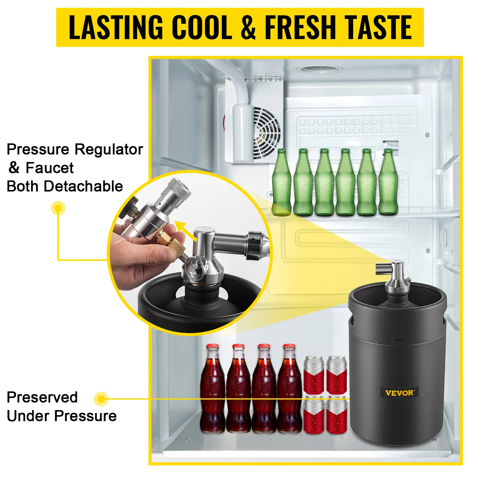 Dzięki wyjmowanemu regulatorowi ciśnienia i kranowi ciśnienie w tej mini beczce można utrzymać dłużej, zachowując świeży smak piwa rzemieślniczego i zapewniając trwałe uczucie chłodu.