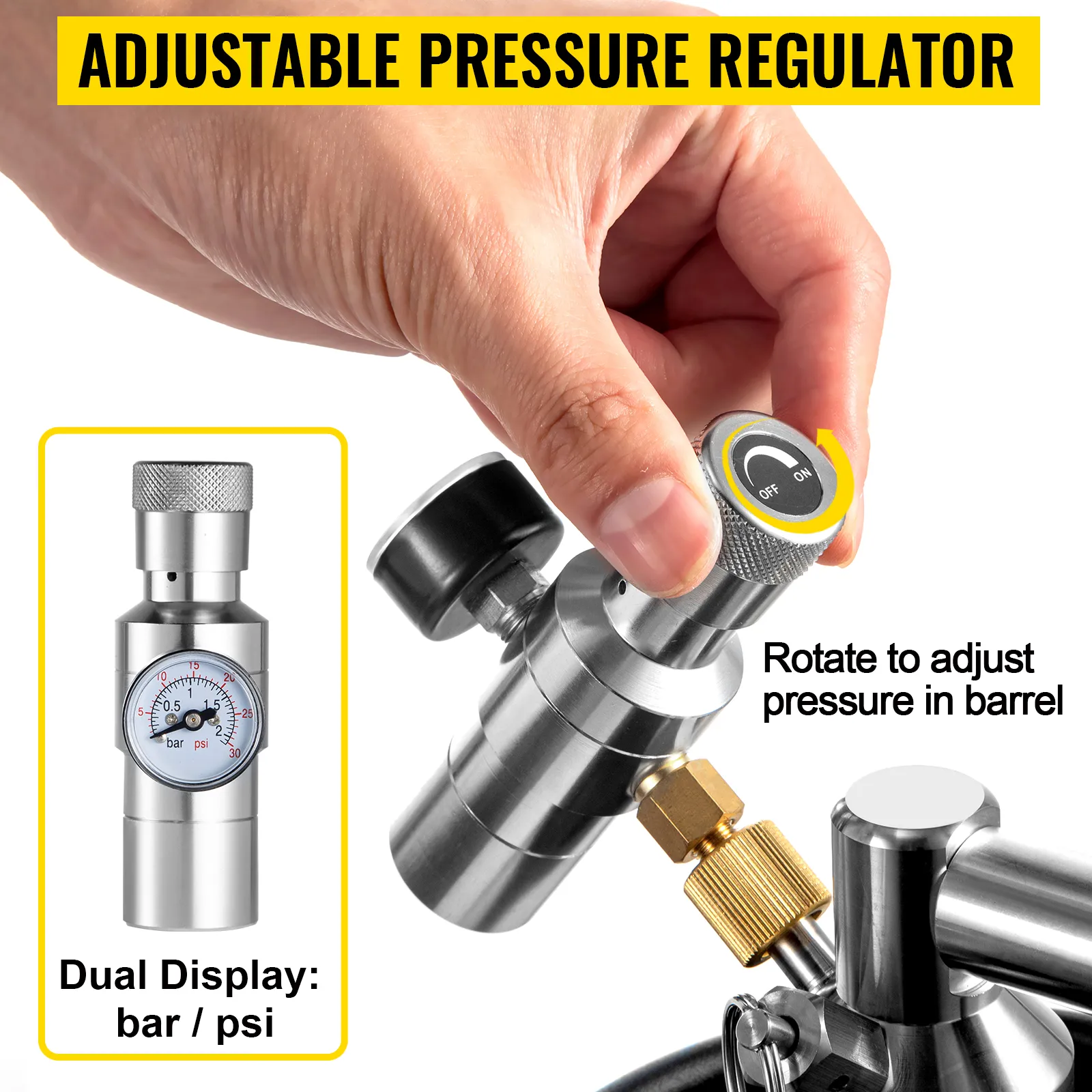 Nasza mini beczka na piwo jest wyposażona w ulepszony manometr, który bezpośrednio i wyraźnie odzwierciedla w czasie rzeczywistym ciśnienie kegeratora piwa. Obsługiwany jest podwójny wyświetlacz PSI i BAR. Możesz obracać pokrętło regulacyjne, aby regulować przepływ napoju i cieszyć się stabilnym ciśnieniem.