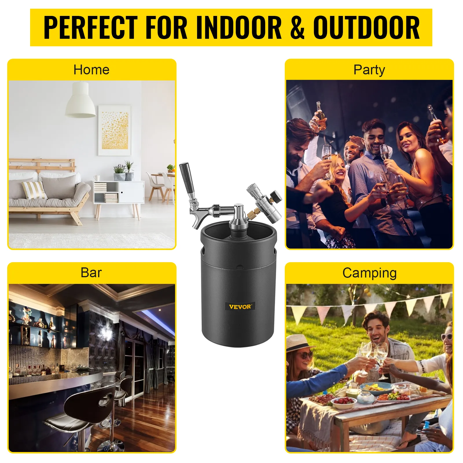 Dzięki kompaktowym rozmiarom i wyrafinowanej konstrukcji ten dystrybutor piwa jest idealnym towarzyszem podczas różnorodnych wydarzeń w pomieszczeniach i na świeżym powietrzu, w tym w domu, w barach, na imprezach i na kempingu.