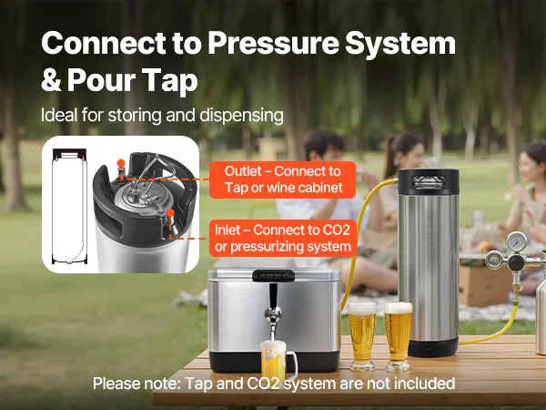 Podwójny system blokowania kulowego: Ten keg do cold brew wyposażony jest w podwójny system blokowania kulowego, kompatybilny ze standardowymi przyłączami. Wlot gazu podłącza się do instalacji CO₂, a wylot do kranu lub mini kegeratora – co zapewnia szybką instalację i wydajne codzienne użytkowanie.