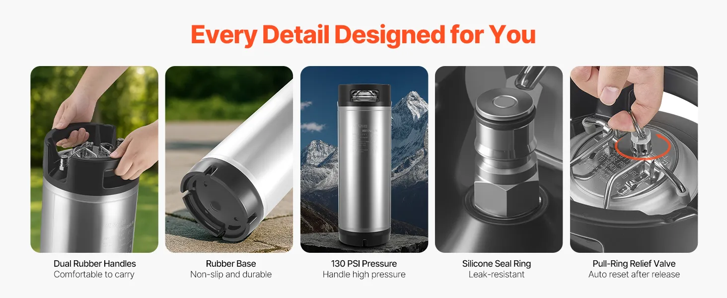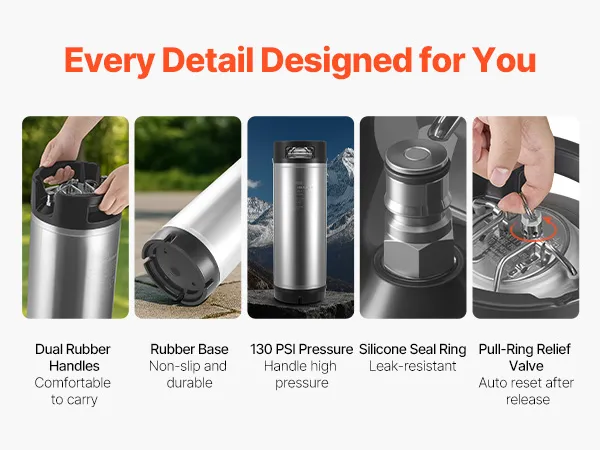 Niezależnie od tego, czy używasz go jako maszyny do butelkowania w domowym browarze, czy zabierasz na imprezę lub kemping, ta beczka oferuje wszechstronną funkcjonalność. Konstrukcja umożliwiająca zabranie piwa w dowolne miejsce pozwala na warzenie piwa w domu i delektowanie się nim na zewnątrz bez potrzeby używania dodatkowych pojemników i narzędzi.