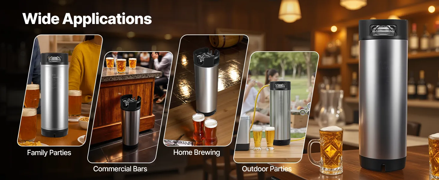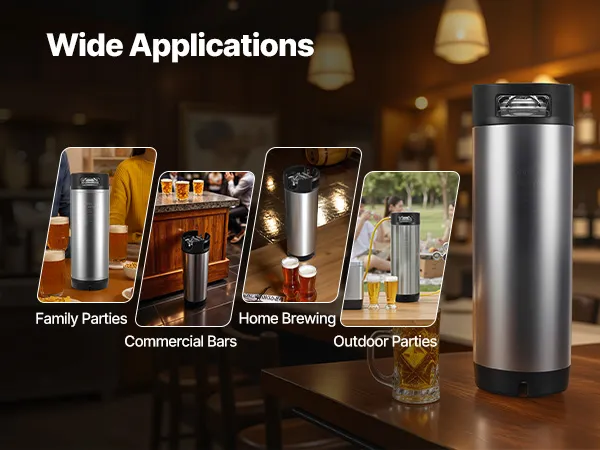 Wszechstronność: Jako element domowego zestawu do warzenia piwa, ta beczka Corny Keg nadaje się do piwa, lemoniady, kawy parzonej na zimno, cydru lub wina. Idealnie nadaje się na nieformalne spotkania, dla piwowarów domowych i do barów, oferując wszechstronne zastosowanie do różnych napojów i w różnych warunkach.