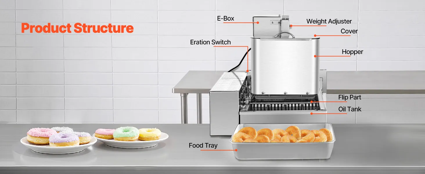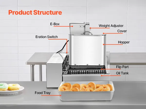 Ta w pełni automatyczna maszyna została zaprojektowana z myślą o optymalizacji produkcji pączków, zapewniając niezmiennie puszyste, złocistobrązowe pączki w zaledwie kilka minut. Niezależnie od tego, czy prowadzisz ruchliwą kawiarnię, tętniącą życiem piekarnię, czy punkt gastronomiczny o dużym natężeniu ruchu, ta maszyna idealnie sprawdzi się nawet w najbardziej wymagających warunkach komercyjnych.