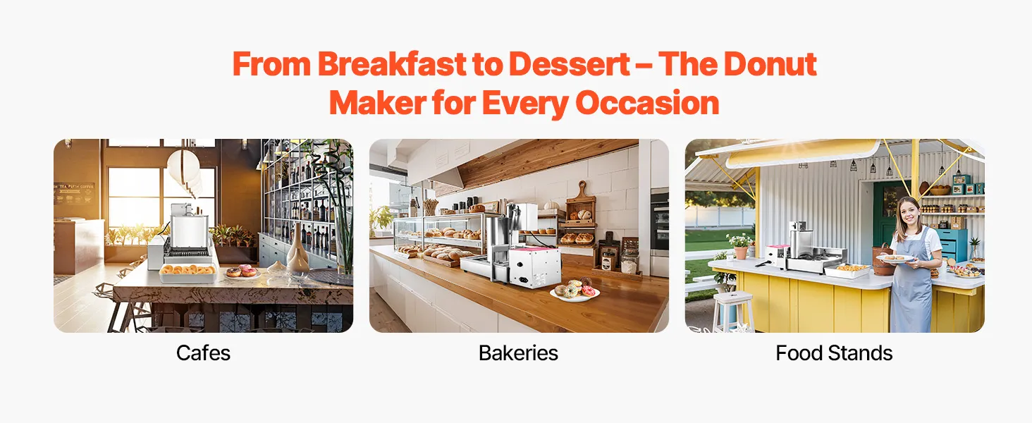 Wszechstronne zastosowanie: Niezależnie od tego, czy jest to kawiarnia, piekarnia czy bar przekąskowy – ta stalowa maszyna do pączków spełni wymagania każdego lokalu gastronomicznego i pomoże Ci szybko i sprawnie przygotować świeże, pyszne pączki.