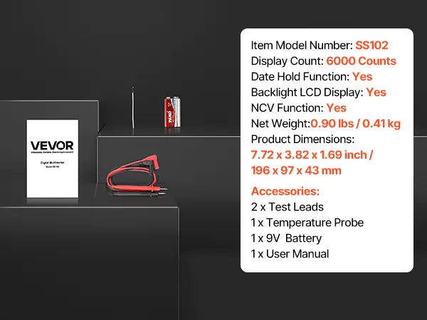 Kompaktowy i przenośny: Nasz cyfrowy multimetr NCV jest kompaktowy i lekki, dzięki czemu jest łatwy w użyciu, przenoszeniu i przechowywaniu. To niezbędne narzędzie do rozwiązywania problemów z urządzeniami gospodarstwa domowego, inspekcji obwodów w pojazdach oraz testowania i konserwacji urządzeń elektrycznych.