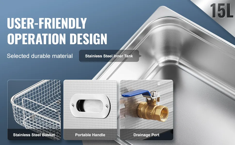 Doskonała jakość: Dołączony kosz wykonany jest z odpornej na korozję i zużycie stali nierdzewnej 304, a komory wewnętrzne zapobiegają zarysowaniom podczas czyszczenia. Przenośny uchwyt i wygodny odpływ zapewniają łatwą i wygodną obsługę, a każdy szczegół został zaprojektowany z myślą o wyjątkowym czyszczeniu.