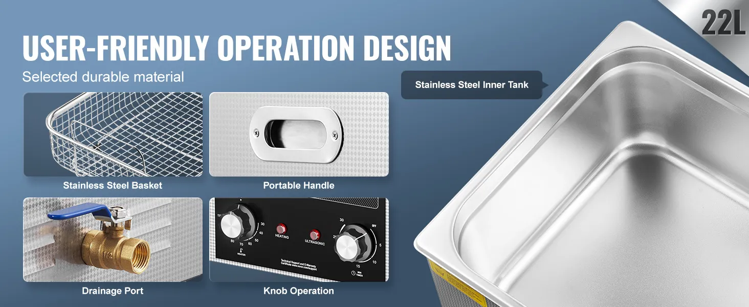 Zaawansowana technologia przetwornika: Wydajny przetwornik w połączeniu z ultradźwiękowymi falami uderzeniowymi natychmiast rozpuszcza uporczywy tłuszcz. Dzięki czyszczeniu precyzyjnych instrumentów w zakresie 360°, bez wysiłku usuwa uporczywy brud i olej, nie uszkadzając ich. Niezależnie od tego, czy chodzi o codzienne czyszczenie, czy profesjonalne czyszczenie, możesz go używać z pełnym zaufaniem.