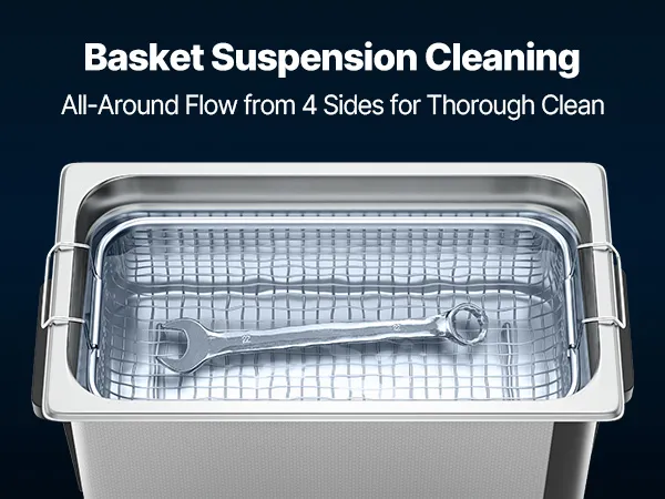 Wysokiej jakości konstrukcja: Myjka ultradźwiękowa jest wyposażona w kosz i zbiornik wewnętrzny ze stali nierdzewnej odporne na korozję, które zapobiegają zarysowaniom. Ulepszony uchwyt ułatwia przenoszenie pełnego zbiornika, a cyfrowy wyświetlacz gwarantuje prostą i precyzyjną obsługę.
