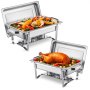 Podgrzewacz do potraw VEVOR Chafing Dish Buffet (7,5 l), zestaw 2 szt. z 2 patelniami pełnowymiarowymi, prostokątny dozownik ciepła do cateringu z pokrywką i uchwytem na paliwo, na wesela, imprezy, bankiety, srebrny