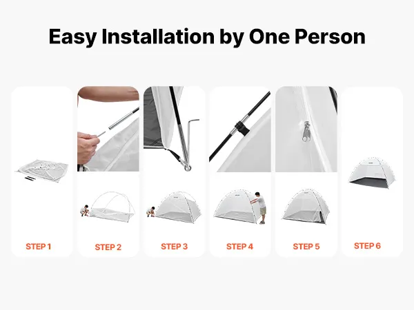 Wyposażona w śledzie mocujące do podłoża, zwijane drzwi z siatki z paskami i wzmocnione dwuwarstwowe zamki błyskawiczne, ta przenośna kabina lakiernicza oferuje stabilność, łatwość użytkowania i niezawodną trwałość.