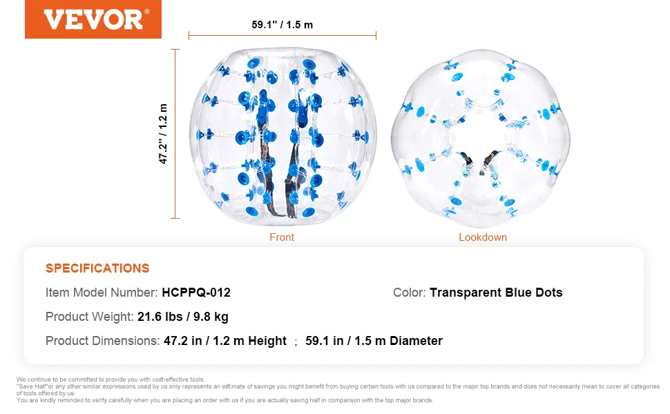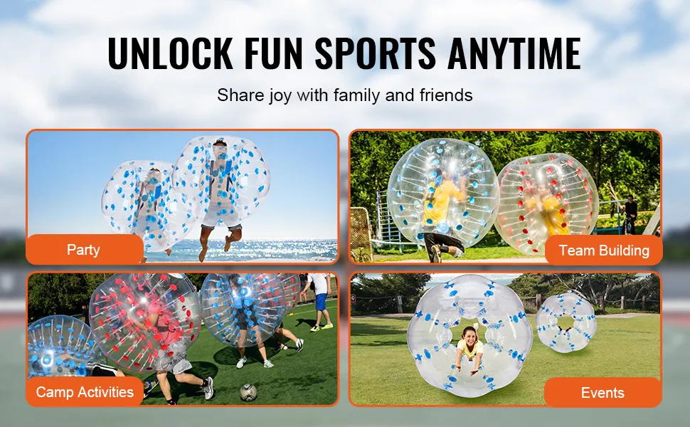 Umożliwia elastyczne opcje rozrywki. Możesz cieszyć się podskakiwaniem, podskakiwaniem i uderzaniem z przyjaciółmi. Jest idealna do różnych warunków zewnętrznych. Używaj jej w ogrodach, na podwórkach, placach zabaw i w parkach. Jest również świetna do ośrodków rekreacyjnych. Niezależnie od tego, czy jest używana jako kula bąbelkowa dla chomika ludzkiego, czy do gier grupowych, piłka oferuje niekończącą się zabawę dla każdego. Jest idealna na spotkania rodzinne lub zajęcia grupowe. Konstrukcja naszej piłki zapewnia maksymalną zabawę dla wszystkich. Możesz więc używać jej na każdą okazję.