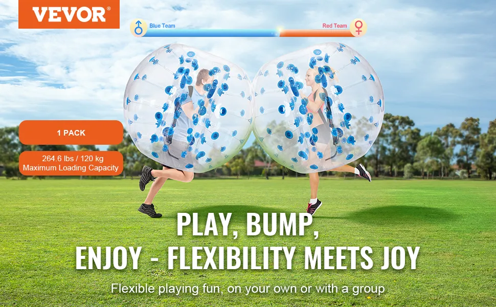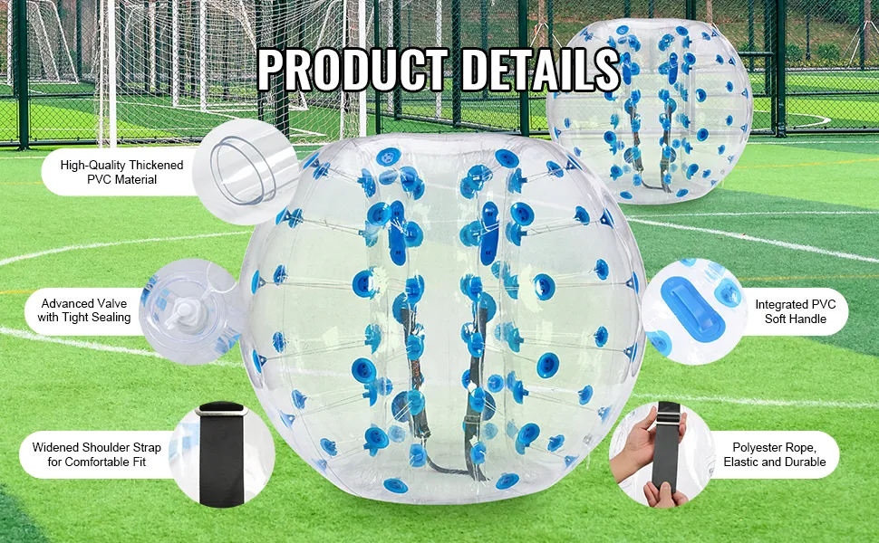 Nadmuchiwana piłka bumper VEVOR jest wykonana z 0,8 mm grubości PVC. Materiał ten jest odporny na wybuchy, co zapewnia bezpieczeństwo. Jest również wodoodporna, więc można jej używać w różnych środowiskach. Na przykład ta piłka jest zbudowana tak, aby zapobiegać wyciekom powietrza. Więc zawsze jest zabawa. Co sprawia, że piłka jest wodoodporna? Tak, nadmuchiwana piłka bumper VEVOR to zapewnia! Nasz projekt zapewnia, że każdy może cieszyć się piłką bumper bez obaw. Sam materiał jest gruby i wytrzymały. Obiecujemy długotrwałe użytkowanie; piłki są idealne do uderzania, odbijania się i toczenia. To Twoja inwestycja w niekończącą się rozrywkę!