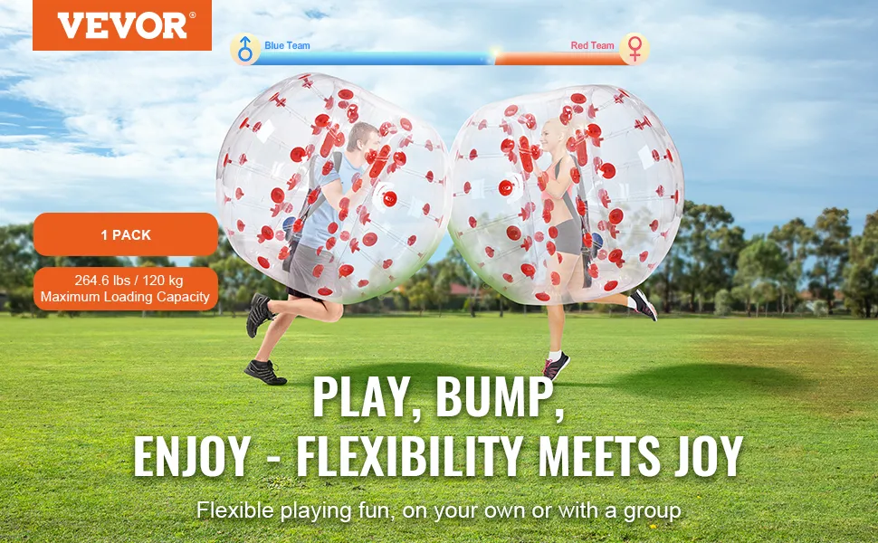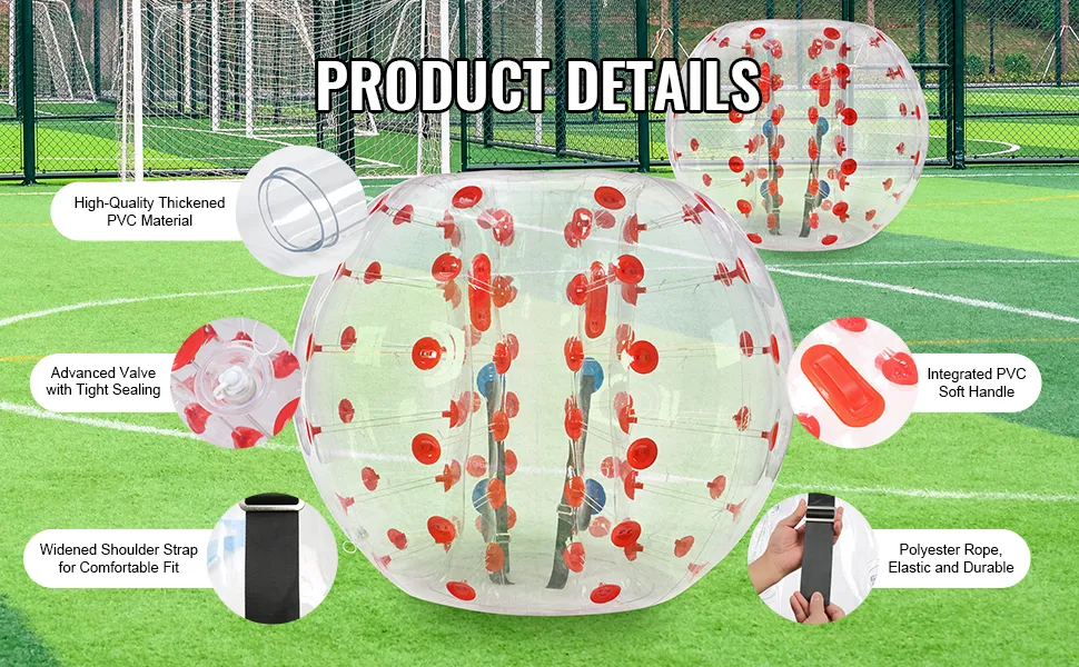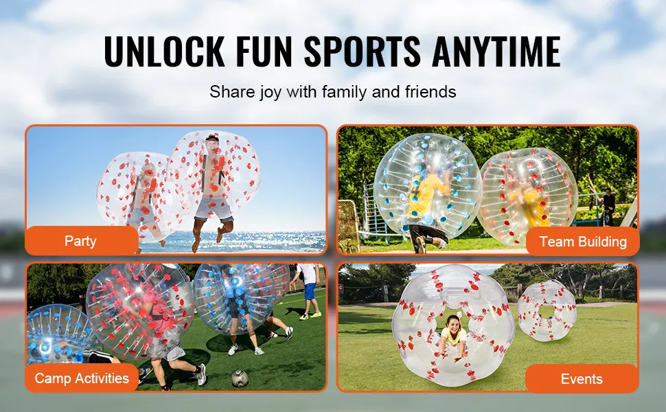 Nadmuchiwana piłka bumper VEVOR jest idealna do gier zespołowych. Promuje przyjacielską rywalizację i interakcje społeczne. Możesz łączyć ludzi. Możesz organizować przyjemne gry i wyzwania. Jest idealna na imprezy i spotkania towarzyskie. Piłka zachęca do pracy zespołowej i sportowego ducha. Nawiązaliśmy więzi z rodziną i przyjaciółmi. Aspekt rywalizacji dodaje emocji. To wspaniały sposób na rozwijanie relacji i dobrą zabawę. Nasza piłka bumper nadaje się na imprezy i zajęcia towarzyskie.
