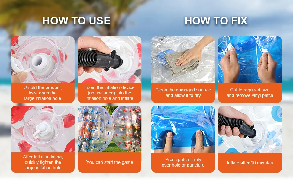Nadmuchiwana piłka bumper VEVOR jest wykonana z materiału PVC o grubości 0,8 mm, dzięki czemu jest mocna i trwała. Wytrzymuje intensywną zabawę bez rozdarcia. Nadmuchiwana konstrukcja zapewnia, że pozostanie nienaruszona. Piłka jest wystarczająco wytrzymała do wielokrotnego użytku. Nawet po godzinach zabawy pozostaje w doskonałym stanie. Dlatego jest to inwestycja zapewniająca długotrwałą zabawę. Nadmuchiwana piłka bumper VEVOR jest idealna dla aktywnych dzieci i energicznych dorosłych. Nie musisz się martwić, że łatwo się opróżni. Jesteśmy niezawodnym wyborem do zabawy i gier.