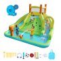 Dmuchany zamek wodny VEVOR (405 x 347 x 255 cm), dmuchany zamek ze ścianką wspinaczkową i elementami dmuchanego zamku, 2 wysokimi zjeżdżalniami wodnymi, brodzikiem i mini boiskiem do piłki nożnej, dla 3-4 dzieci (w wieku od 3 do 8 lat)