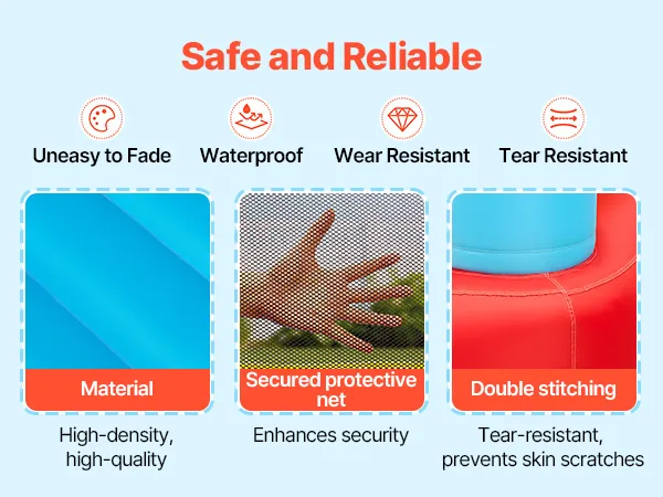 Design przyjazny dzieciom: Nasz dmuchany zamek zachwyca kolorową, wesołą obudową, która zachwyca dzieci. Dzięki bezszwowym, samoprzylepnym łatkom naprawczym naprawa jest szybka i łatwa. Przezroczyste łaty przywracają pierwotny wygląd, umożliwiają wielokrotne użytkowanie i stanowią ekonomiczne rozwiązanie do zabawy.