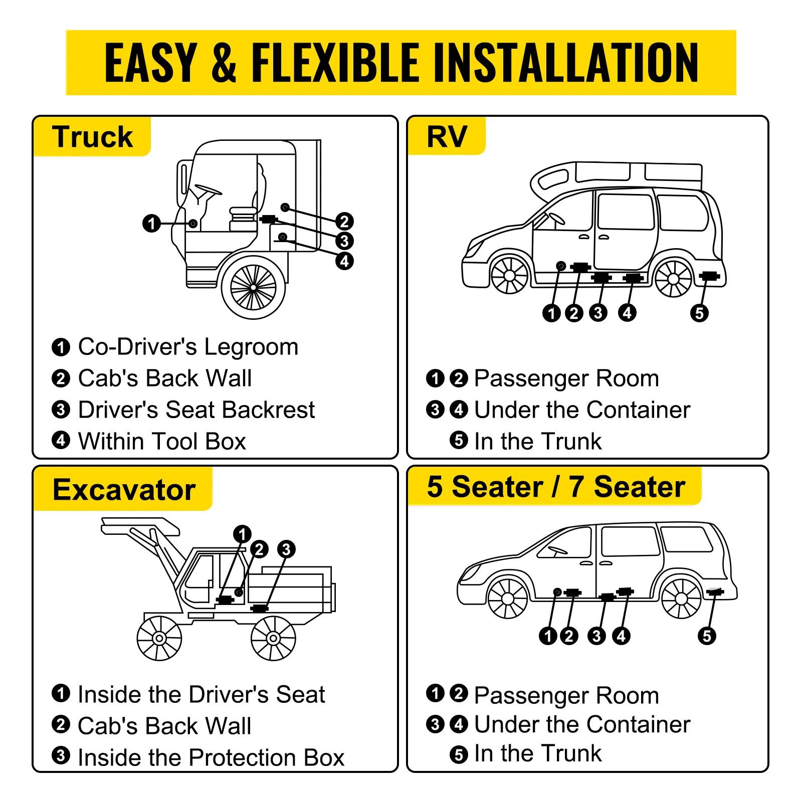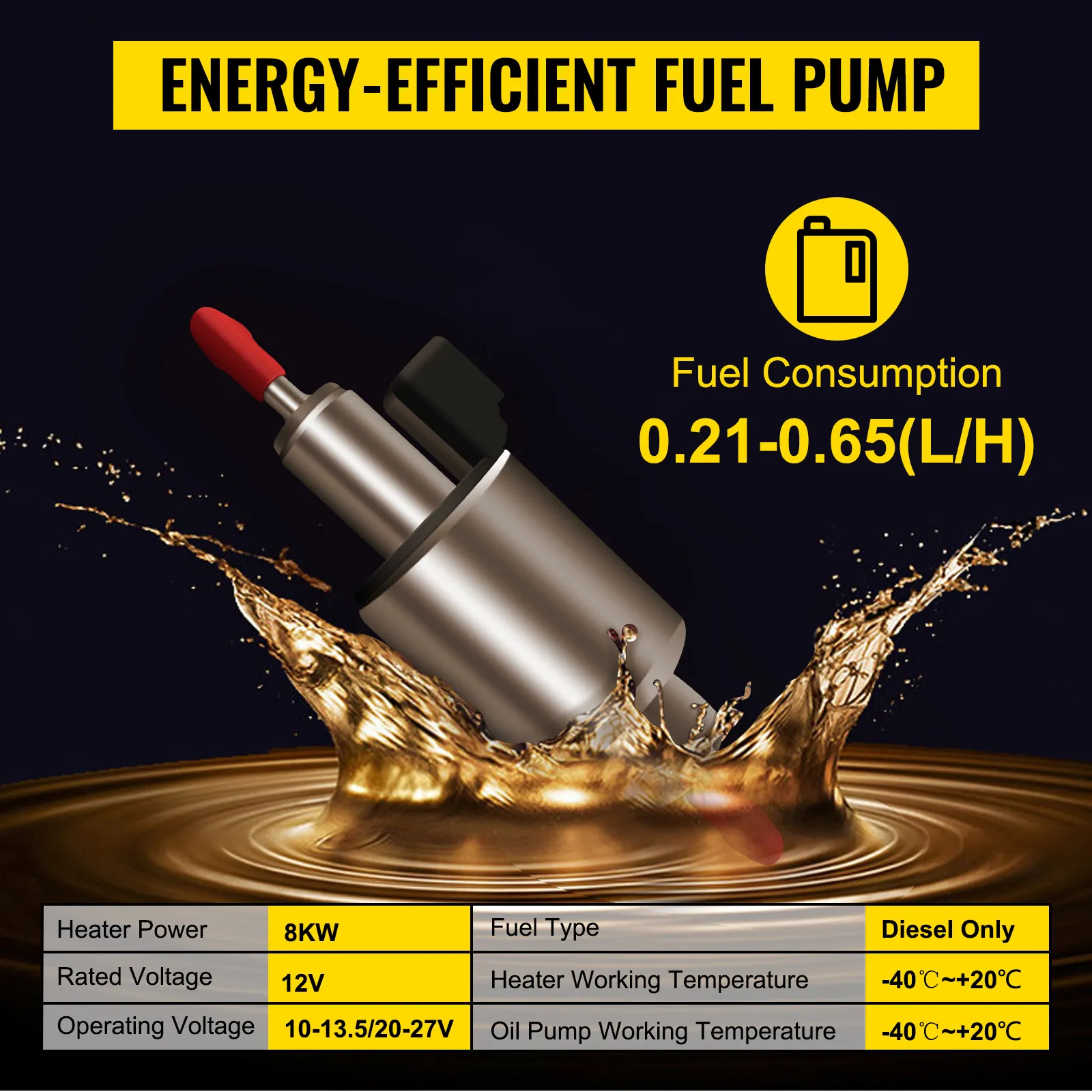Nagrzewnica powietrza na olej napędowy o mocy 12 V i mocy 8 kW zapewnia szybkie nagrzewanie nawet w temperaturze -40°C, szybko usuwając szron z szyb pojazdu. Hałas jest skutecznie redukowany poprzez kontrolę prędkości wentylatora, cichy wentylator i pompę olejową.